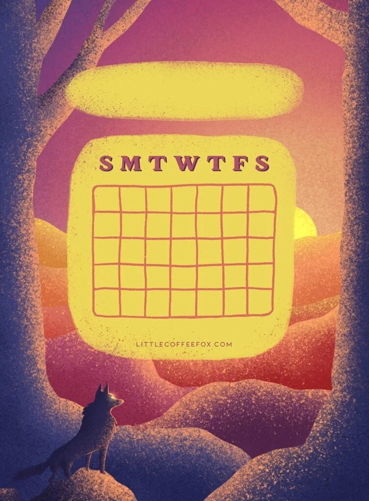 It’s always been a dream of mine to live in a cabin in the woods. The December bullet journal cover perfectly captures that cozy feeling! Plus, I love how the calendar thumbnail gives a perfect way to see important dates at a glance.